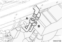 左排 - 燃油歧管進(jìn)油管。在燃油油軌管接頭和燃油計(jì)量接頭上安裝新 O 形圈。將燃油計(jì)量管 (A) 和燃油油軌管 (B) 安裝到 ECVA 和燃油歧管的正確位置上。擰緊管。扭矩值: 45 n.m [33 ft-lb]
