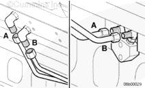 左排 - 燃油歧管進(jìn)油管。從燃油歧管和 ECVA 上拆下正時(shí)管 (A) 和油軌管 (B)。廢棄 O 形圈。