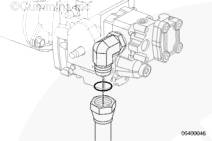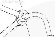安裝燃油泵進(jìn)口管接頭和燃油濾清器座出口管接頭上的軟管。擰緊軟管。扭矩值: 120 n.m [89 ft-lb]