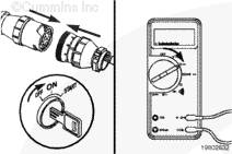 在油軌壓力傳感器與發(fā)動機主線束之間連接抽頭電纜(零件號 3824774)。設(shè)定萬用表讀取 VDC。將鑰匙開關(guān)轉(zhuǎn)到“ON”(接通)位置。