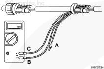 將信號線(觸針 C)和回路線(觸針 B)安裝在萬用表上。電壓測量值應(yīng)在 0.46 VDC 到 4.56 VDC。如果電壓 不在 0.46 VDC 到 4.56 VDC,更換油軌壓力傳感器。參考步驟 019-115。