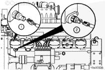 斷開康明斯大氣壓力傳感器 (2) 和進氣歧管壓力傳感器 (1)。
