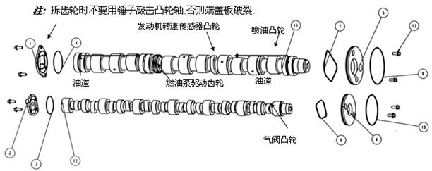 沒(méi)有凸輪軸側(cè)蓋泄漏,僅有 No.1和 No.7蓋板