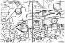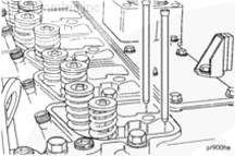 注: 為了在已安裝缸蓋時(shí)拆卸氣門彈簧,正在維修的氣缸的活塞必須處于上止點(diǎn)位置,以支撐氣門。