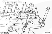 使用清潔的發(fā)動機(jī)潤滑機(jī)油潤滑缸蓋螺釘?shù)穆葆旑^以下的螺紋部分。將螺釘安裝到缸蓋中并用手?jǐn)Q緊。