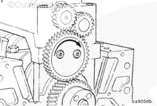 旋轉(zhuǎn)平衡器齒輪直到正時標記對正。平衡器必須保持在此位置,以便正確安裝在發(fā)動機上。