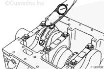 使用盤車工具(零件號 3824591)盤動發(fā)動機,使要拆卸的連桿軸承所在的活塞達到下止點。