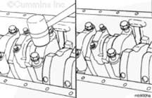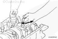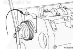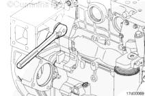 將盤車工具插入飛輪殼,與飛輪/柔性連接盤齒圈嚙合。隨后便可以用手轉(zhuǎn)動曲軸。用一把 1/2-英寸的棘輪扳手或撬棍使其轉(zhuǎn)動。