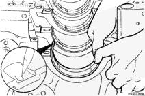 安裝曲軸上止推軸承。4 缸發(fā)動機 - 4 號主軸承位置。
