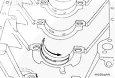 確保軸承背面清潔而且無碎屑,然后將上主軸承裝到缸體中。確保軸承定位舌對準主軸承缸體鞍座上的定位舌。