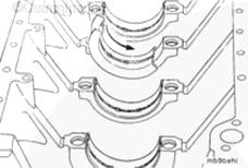 在拆下主軸承蓋之前,一定要在主軸承蓋和缸體的機油冷卻器側(cè)清楚標記出蓋的位置。