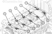 維修技巧:將發(fā)動機留在發(fā)動機支架上并倒轉(zhuǎn),凸輪軸應(yīng)被裝上。這將使挺桿保持在懸掛狀態(tài),因此可以安裝凸輪軸。不需要使用挺桿拆卸組件(零件號 3822513)抬起挺桿。凸輪軸裝上后,將發(fā)動機轉(zhuǎn)成垂直,使挺桿接觸到凸輪軸。安裝輸油泵。參考第 5 節(jié)中的步驟 005-045。安裝凸輪軸。參考第 1 節(jié)中的步驟 001-008。安裝燃油泵。參考第 5 節(jié)中的步驟 005-016。安裝空氣壓縮機(如果配備)。參考第 12 節(jié)中的步驟 012-014。如果配備,安裝或連接所有驅(qū)動附件(例如液壓泵)安裝機油吸油管。參考第 7 節(jié)中的步驟 007-035。如果配備,則應(yīng)安裝平衡器。參考第 1 節(jié)中的步驟 001-004。安裝油底殼和密封墊。參考第 7 節(jié)中的步驟 007-025。安裝后油封和后油封托架。參考第 1 節(jié)中的步驟 001- 067和參考第 1 節(jié)中的步驟 001 - 104。