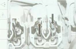 注意:兩個(gè)溫控閥的切口凹槽必須指向發(fā)動(dòng)機(jī)中心