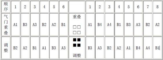 1、轉(zhuǎn)動(dòng)曲軸使A1缸處于上死點(diǎn)(TDC)位置;檢查進(jìn)排氣門(mén)重疊的氣缸: