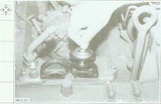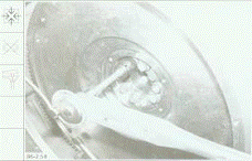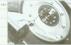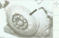 2、松開(kāi)飛輪緊固螺栓并拆下飛輪;(拆卸飛輪螺栓時(shí)需要將飛輪與飛輪殼暫時(shí)固定在一起)。