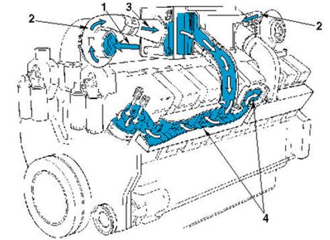 船用發(fā)動機上的渦輪增壓器為水冷式。軸承殼體和渦輪增壓器渦輪殼體為水冷式。
