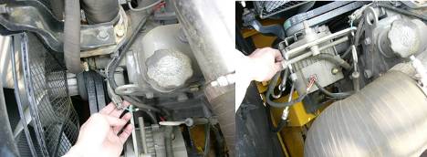 五十鈴4JG1發(fā)動(dòng)機(jī)在更換了燃油粗濾器新零件的拆裝過程:。