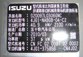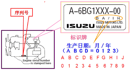 五十鈴柴油機(jī)的標(biāo)識(shí)牌和序列號(hào)
