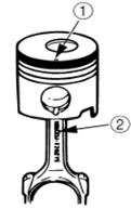 • 活塞頭前部標(biāo)記①和連桿上“ISUZU”鑄造標(biāo)記②必須朝向同一側(cè)