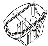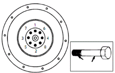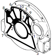 • 按照?qǐng)D示順序每次一點(diǎn)點(diǎn)擰緊飛輪螺栓