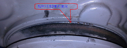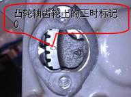 二、完成上一步安裝后,盤車,將凸輪軸上的標(biāo)記0調(diào)整到指針位置。
