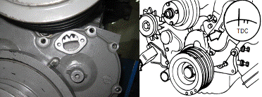 轉(zhuǎn)動(dòng)曲軸把正時(shí)指針和曲軸皮帶輪上的規(guī)定的正時(shí)標(biāo)記對(duì)齊,使第一缸處以壓縮行程上止點(diǎn)。