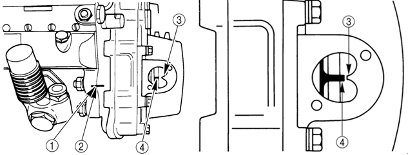 • 將噴油泵正時(shí)觀察孔指針③和凸輪軸正時(shí)齒輪標(biāo)記“O” ④對(duì)齊