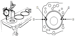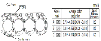 1.選擇適當(dāng)厚度的缸蓋墊,活塞頭部突出量最大與最小之差不能超過如下所示,并根據(jù)下表確定缸墊厚度