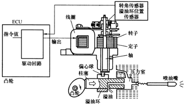 控制ECU根據(jù)各種傳感器信號計算出供油量后,向控制器發(fā)出指令和相關(guān)信息控制器則根據(jù)ECU的指令和相關(guān)信息,并參考燃油溫度傳感器信號對分配給各缸的供油量進行平衡(均勻性控制),并通過驅(qū)動器(放大電路)直接控制高速電磁溢流閥工作。