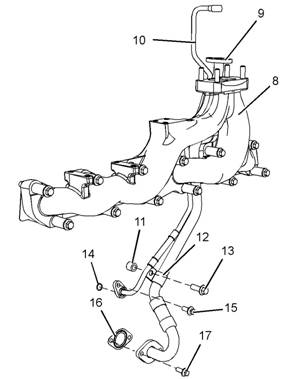 12.為拆下管組件(9)和管組件(10),將需要拆下排氣歧管(8)。