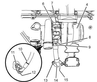 10將新密封墊(15)(未顯示)定位在管組件(10)的法蘭和缸體之間。安裝螺栓(13)并用手擰緊。
