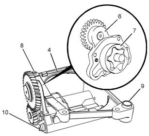 5確保兩 根定位 銷 (8) 和 (9) 正 確定位 到發(fā)動 機(jī)機(jī) 油泵 (4) 的 殼體 中。