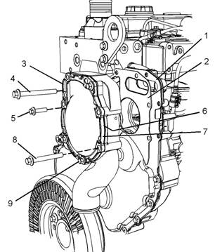 9. 按圖 93 中的順 序擰緊 螺栓 (4)、(5)、 (8) 和 (9) 至扭矩 為 22 N·m (195 lb in)。