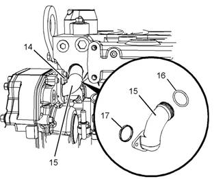 16.將旁通管安裝到缸蓋上。安裝螺栓(14)。擰緊螺栓至扭矩為22N·m(195lbin)。