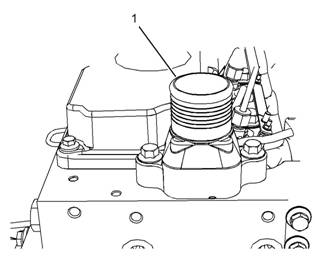 26.如有必要,將水溫調(diào)節(jié)器殼體(1)安裝到缸蓋上。有關(guān)正確的步驟,請(qǐng)參閱《Perkins柴油機(jī)Perkins柴油機(jī)拆解和組裝》,“水溫調(diào)節(jié)器殼體-拆卸和安裝”。