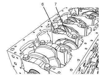 6將螺栓(6)和主軸瓦蓋(7)從缸體上拆下。