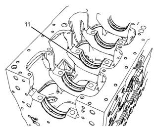 10從缸體上卸下主軸瓦上軸瓦(11)。保持主軸瓦上軸瓦與相應(yīng)的主軸瓦蓋一體。