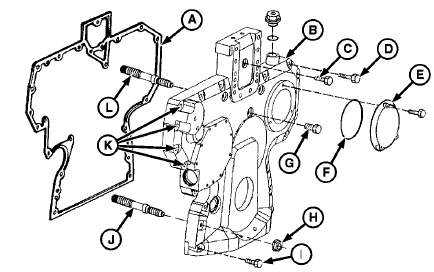 1. 確保正時(shí)齒輪蓋和前板上的襯墊表面清潔。(請(qǐng)參閱本章前面的“清潔和檢查前板”部分。)