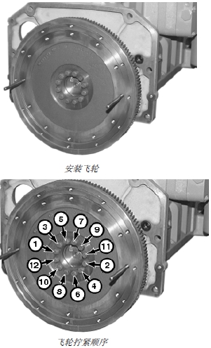 3. 根據(jù)下面的技術(shù)規(guī)格,按圖所示的順序擰緊飛輪固定用帶帽螺釘。