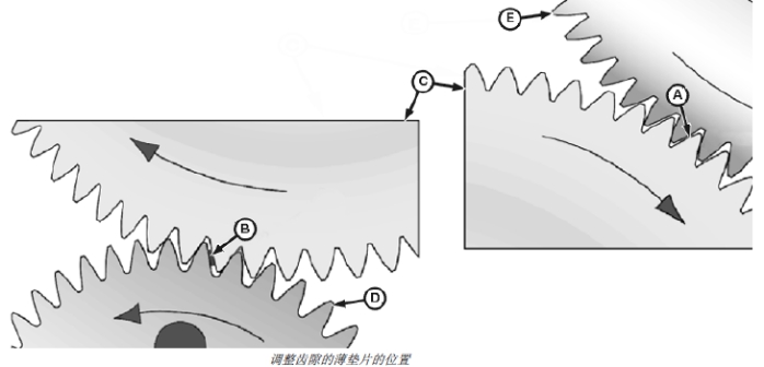 齒輪齒間的兩個(gè)薄墊片必須固定牢靠。