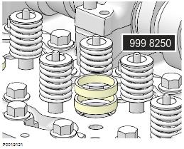 17 檢查并確保volvo活塞位于下止點上。重要! 必須確保工具(零件號 9808617)長度不會損壞活塞。