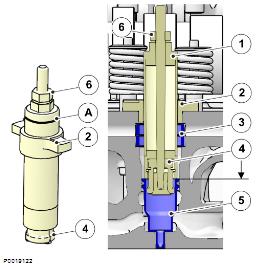 4 安裝支撐環(huán)(2)時,拉拔器標記(A)應明顯可見。若此標記不可見,則拆下套筒可能會很困難。將拉拔器(1)向下壓入套筒底部;見箭頭標記。安裝支撐環(huán)(2)。- 9998250 密封環(huán),2 個(3)- 膨脹器(4)- 套筒(5)- 螺母(6)