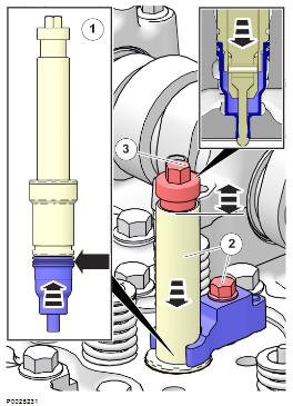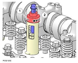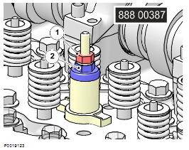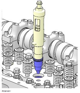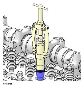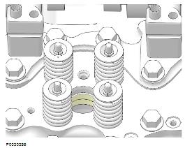 1 使用排空冷卻劑 9996049 排水軟管;參見冷卻劑,排放 330 頁。標記并拆下氣門軛。