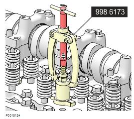 11 繼續(xù)擰,直到套筒松開并且拉拔器和套筒可被拆下。拆下畸形的volvo套筒可能會很困難。如果出現這種情況,拆下拉拔器并為膨脹器尋找新的夾具。安裝支撐環(huán)并再次嘗試。