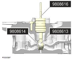 12 安裝新的套筒之前使用工具 9998599 清潔套件和電鉆。將工具 9998580 保護套筒安裝到噴油器孔中并用固定器固定。重要! 必須使用編號為9998580 的工具 - 保護套筒,從而防止污垢進入燃油管中。