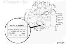 Bosch® VE 噴油泵銘牌位于泵體側(cè)面。該銘牌提供燃油泵標(biāo)定信息。