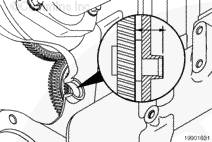 測量此傳感器 O 形密封圈表面與齒輪邊緣之間的距離,并核實空氣間隙充足。如果空氣間隙小于 33.81 mm [1.33 in] 或大于 34.06 mm [1.34 in],則檢查凸輪軸齒輪/輪齒有無損壞或旋轉。