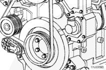 沿康明斯發(fā)動(dòng)機(jī)的旋轉(zhuǎn)方向順時(shí)針轉(zhuǎn)動(dòng)盤(pán)車(chē)裝置。將減振器上的 A 標(biāo)記與齒輪室蓋上的指示箭頭對(duì)齊。