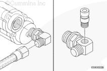 拆下燃料腔進口的彎管或遠程安裝的燃料濾清器。在彎管接頭上鉆孔攻絲,安裝一個 Compuchek™ 壓力管接頭。將彎管裝入燃料腔進口或安裝遠程燃料濾清器。