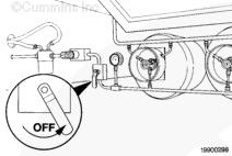 使用燃氣探檢儀(零件號 3823984)或肥皂溶液檢查所有管接頭有無泄漏。如果發(fā)現(xiàn)泄漏,關(guān)閉車輛主燃料切斷閥,將鑰匙開關(guān)轉(zhuǎn)到“OFF”(斷開)位置,立即修復(fù)泄漏。連接一只量程為 0 至 2068 kPa [0 至 300 psi] 的壓力表。